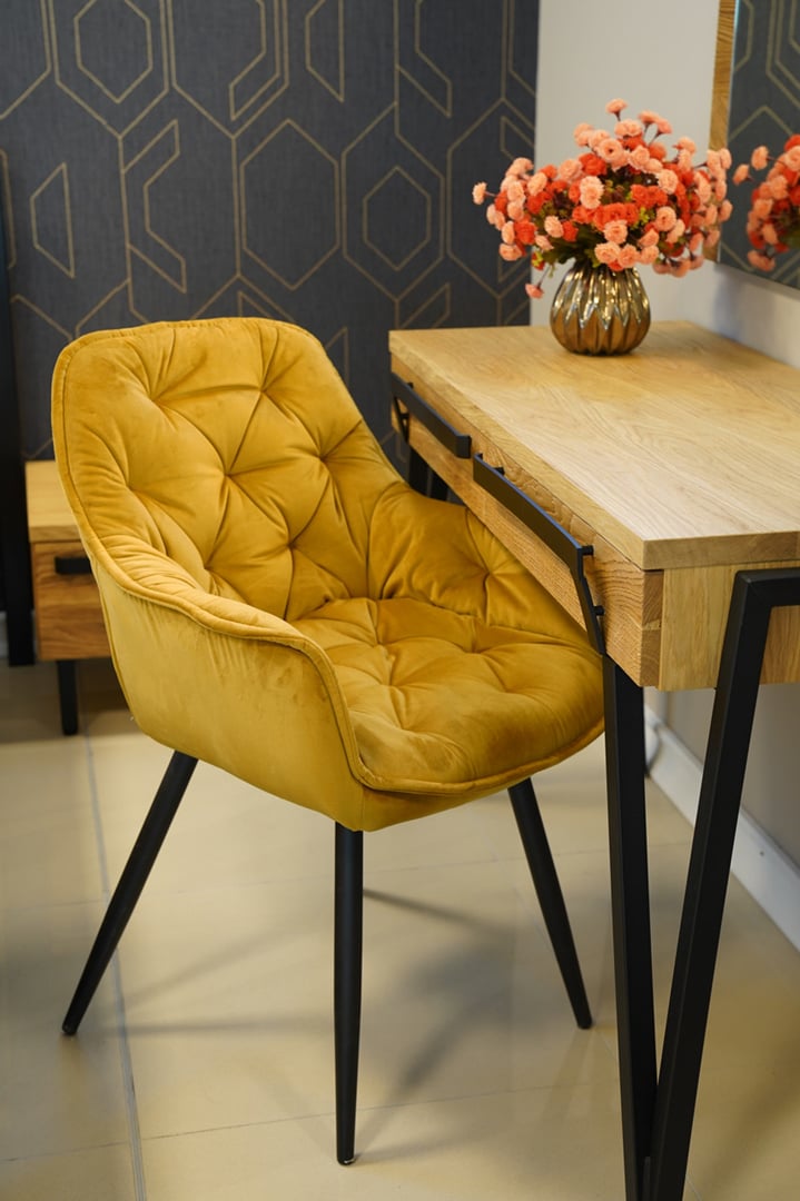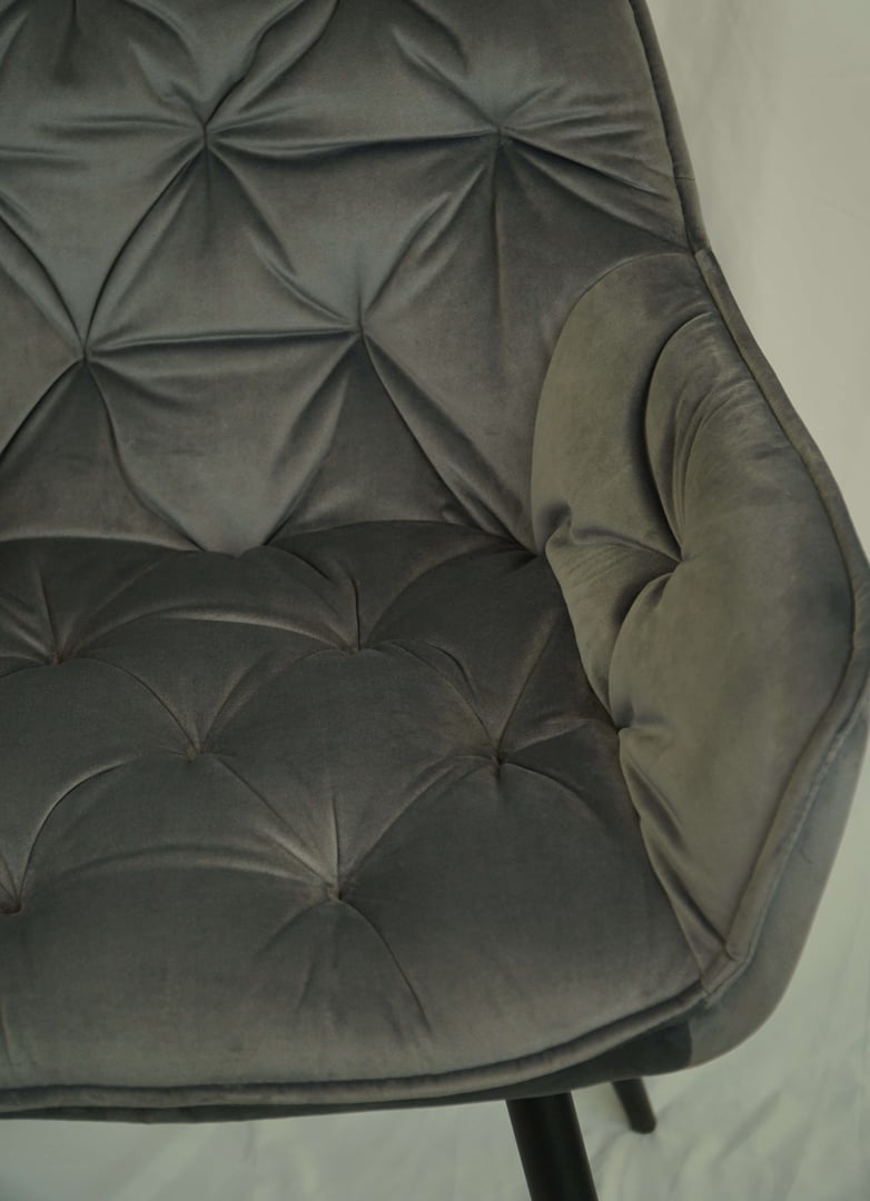 Čalouněná moderní jídelní židle křeslo Vitos. Kovové nohy, prošívaný potah. Židle Vitos určené pro milovníky pohodlného posezení nejen u jídelního stolu.