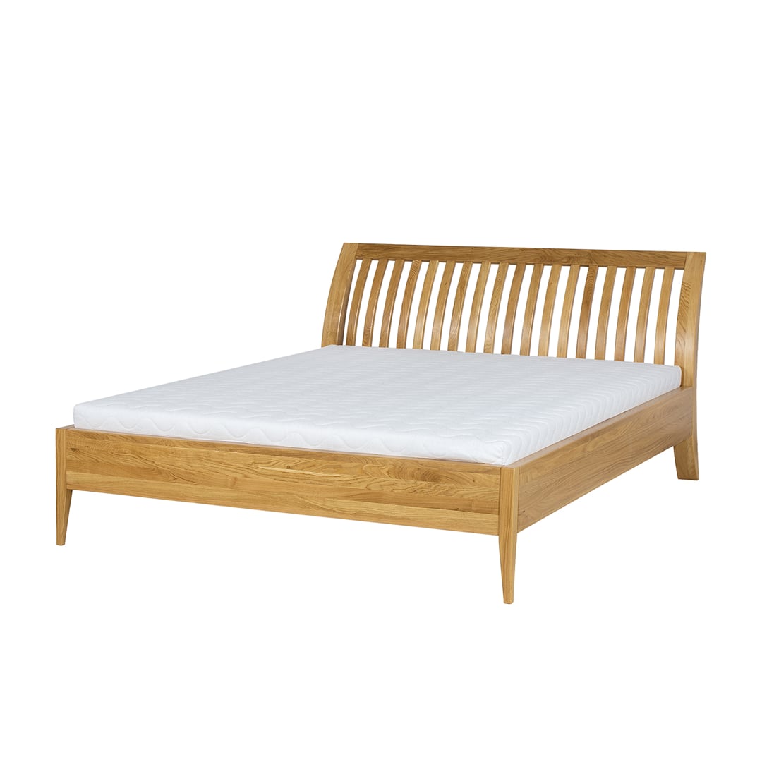 Dubová postel LK291 je jedním z těch kusů nábytku, které přitahují pozornost. Masivní a masivní, z masivního dubového dřeva. Charakteristická, ohnutá opěrka hlavy mu dodává jedinečné kouzlo. Podobně ohnuté nohy u opěrky hlavy a malé, ozdobné přední nohy nábytku dodávají celé konstrukci lehkost a zdůrazňují její jedinečnost. Celek činí tento kus nábytku ústředním prvkem každého uspořádání ložnice