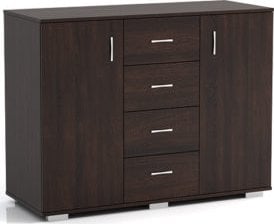 Komoda klasické vzhledu s klasickým a velmi oblíbeným uspořádáním. Díky odolné laminované dřevotřísce o síle 16 mm.
