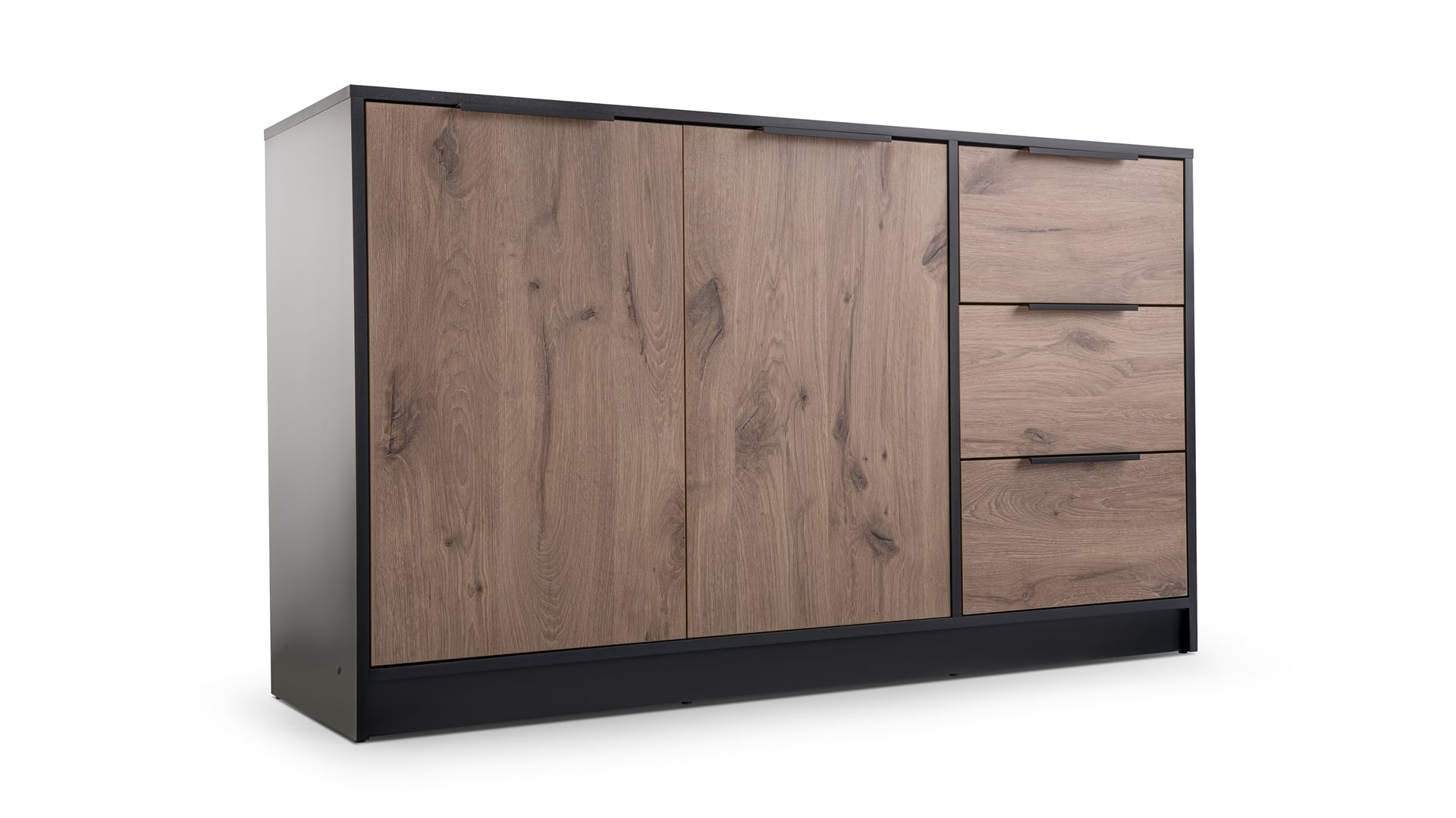 Prostorná a moderní komoda Lati je vyrobena z kvalitního 16 LTD, které je odolné proti poškození a snadno se udržuje.