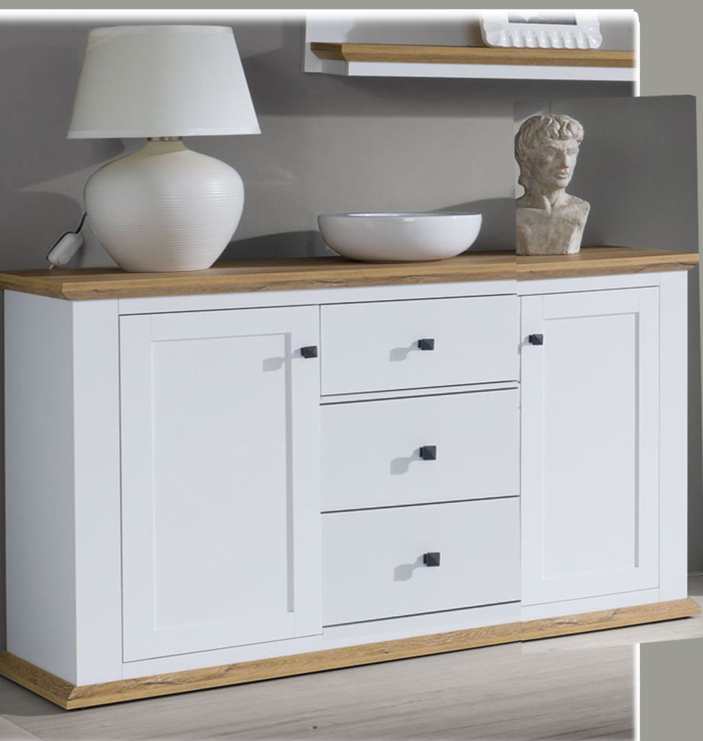 Skládá se ze dvoudveřové části a tří zásuvek. Za dveřmi vlevo a vpravo je jedna police. Kolekce nábytku je k dispozici ve třech barvách. Čela a tělesa jsou vyrobena z vysoce kvalitní laminované nábytkové desky se zvýšenou odolností proti poškrábání a poškození. Další výhodou systému jsou rámy na čelních stranách, zesílené spodní a horní obruby a kovové stylizované rukojeti.