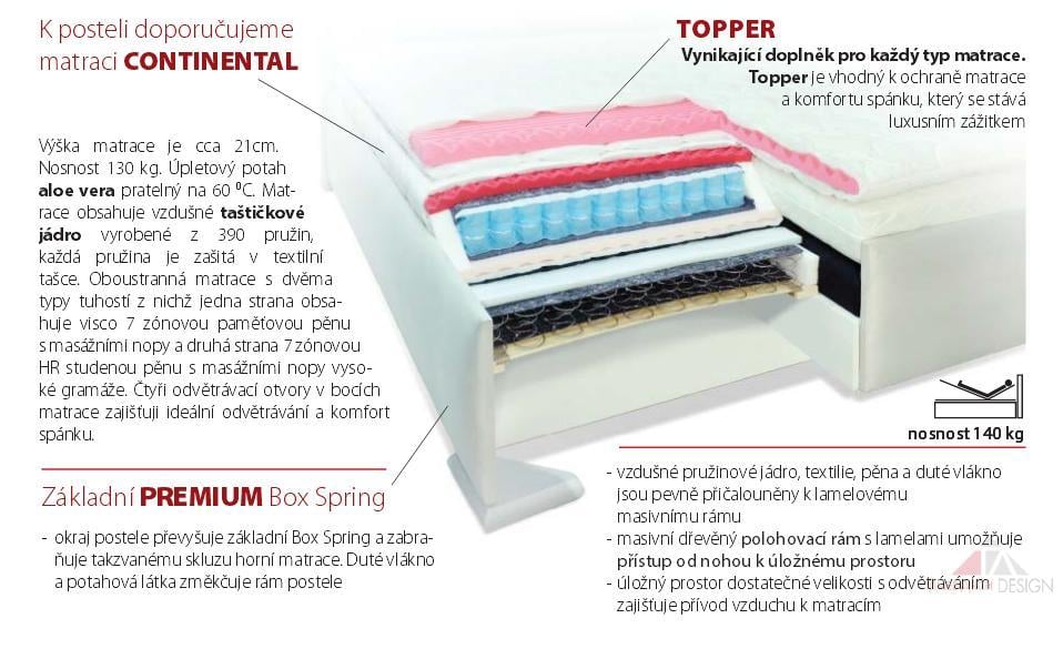 k spojení matrace s úložným prostorem je použit výklopný mechanismus s plynovými písty