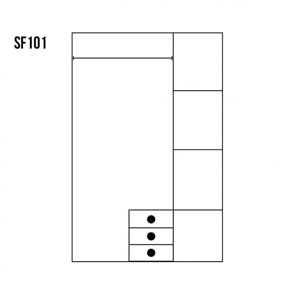 Se šatní skříní z borovice SF101 snadno zařídíte moderní a estetický interiér. Jednoduchá struktura nábytku získala jedinečný charakter díky dobře viditelnému zrnění přírodního dřeva, ze kterého byl vyroben. Skříň má také funkční úložný prostor. Uvnitř je šatní tyč. Centrální část nábytku je prakticky obhospodařována třemi zásuvkami. Na boku byly instalovány praktické police, do kterých se snadno vejdou drobné drobnosti.