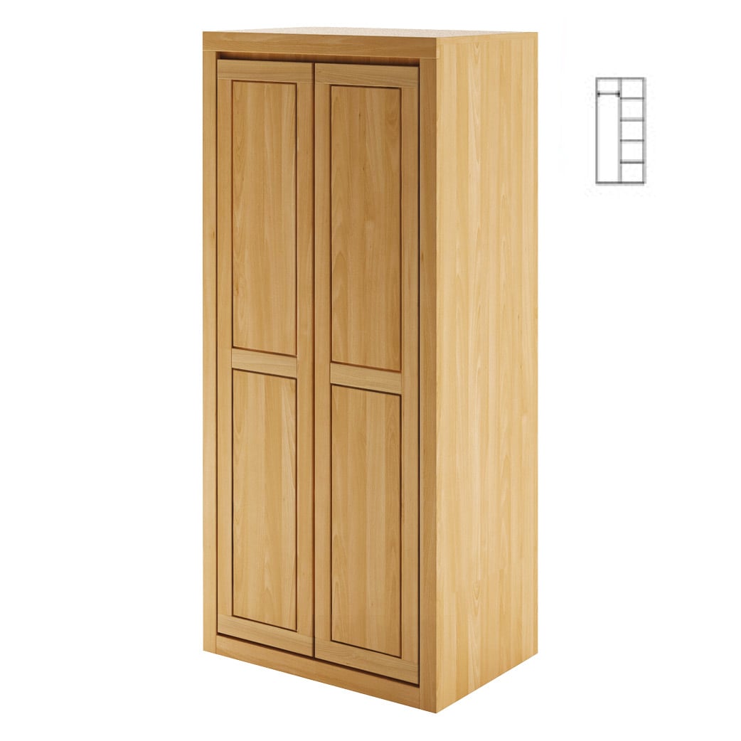 Dvoudveřová šatní skříň z bukového dřeva SF402 je synonymem klasiky v moderním provedení. Jednoduchý, klasický tvar je zdoben malými drážkami na přední straně. Absence viditelných úchytek je jedním z nejžhavějších trendů posledních sezón, díky kterému šatní skříň získala moderní elegantní vzhled. Vnitřek šatní skříně je vybaven tyčí a praktickými policemi, díky kterým je prostorná a funkční.