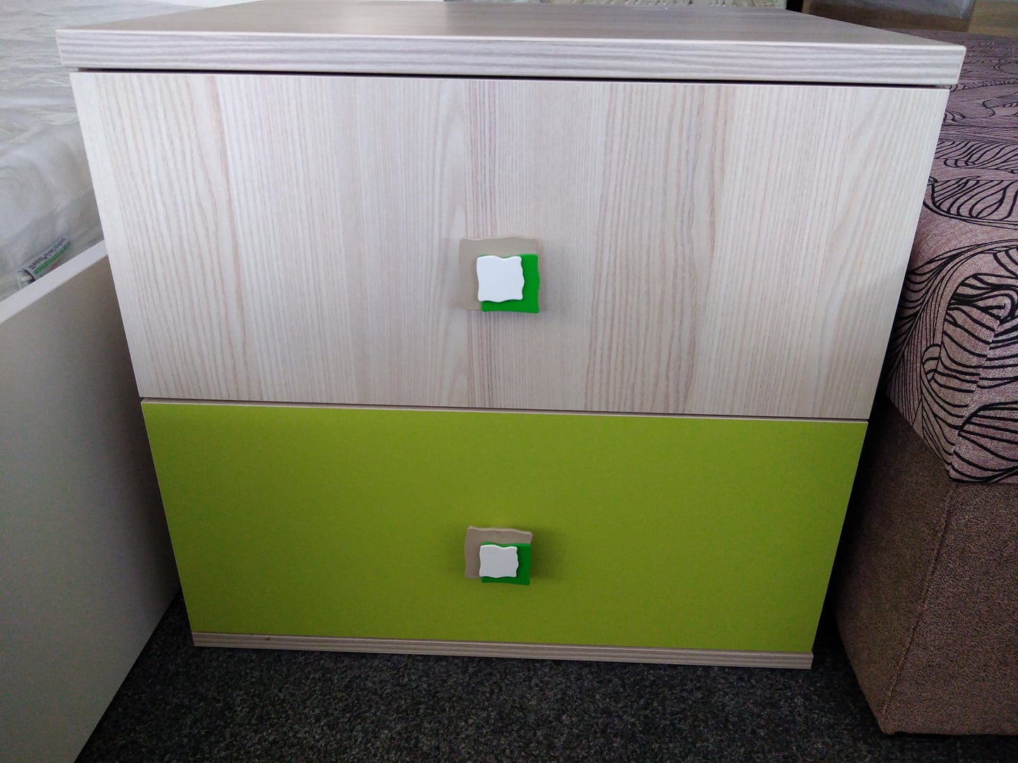 Mega výprodej noční stolek Pavlína 22 jasan,zelená 55x51x44