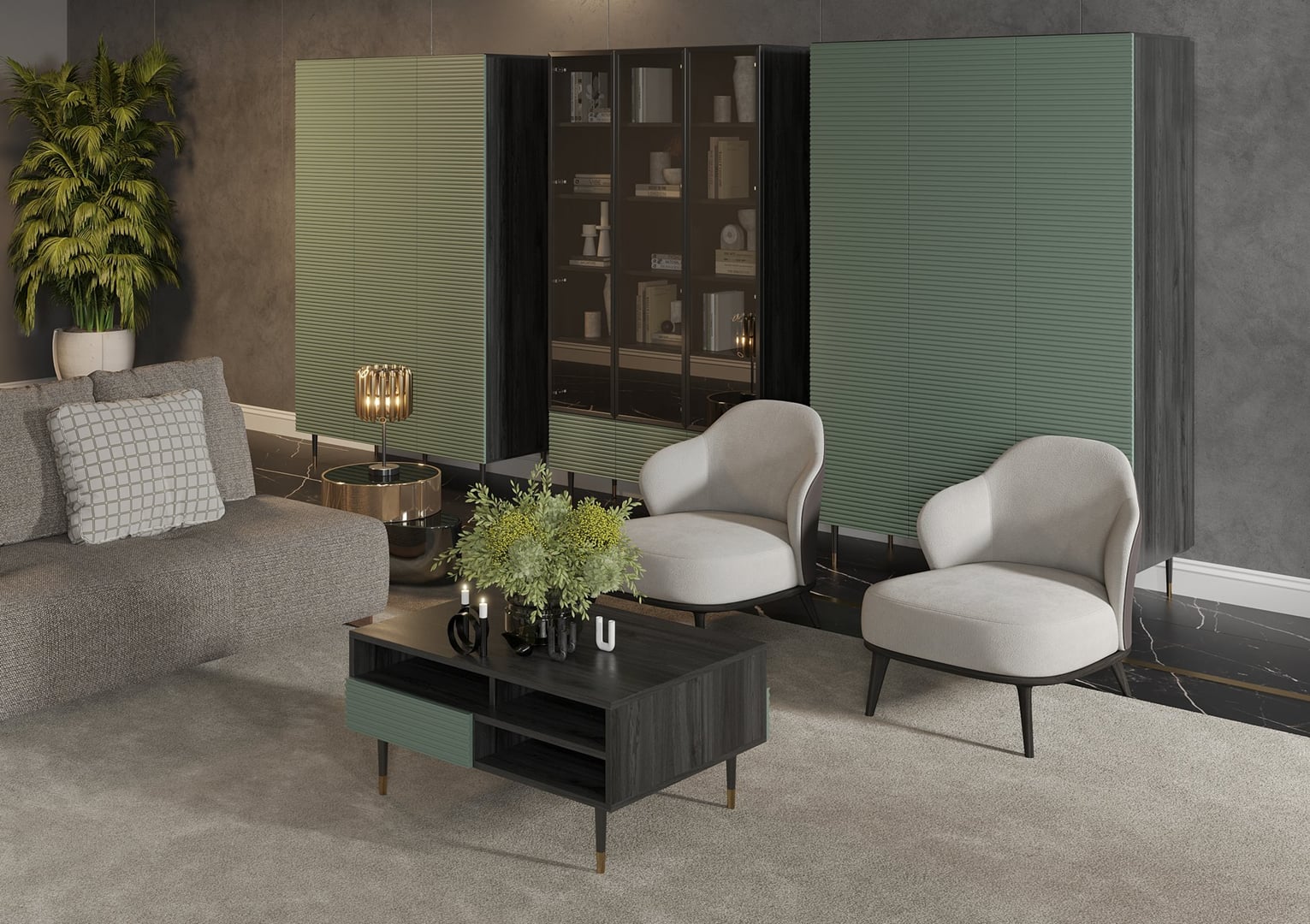 Obývací pokoj kanceláč pracovna Imperiál maxi komplet zeleno černá