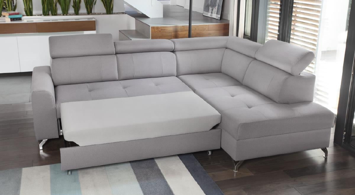 Nabízí pohodlné sezení a zaujme svým vzhledem. Hodí se jak do moderního tak do klasického interiéru a splňuje kvality jakými je pevnost a odolnost. K čalounění sedací soupravy je použita kvalitní vysokoelastická pěna (HR), která je zárukou trvanlivosti a vysokého komfortu sezení. Pěna je umístěna na vlnité pružině. Hlavová opěrka je polohovatelná, je možné ji naklonit či sklopit. Kostra rohové sedací soupravy je vyrobena z masivního dřeva v kombinaci s dřevotřískou. Funkce rozkládání je vysouvací a praktický úložný prostor ocení téměř každý. Nohy sedací soupravy jsou kovové. Sedací souprava má očalouněná záda.