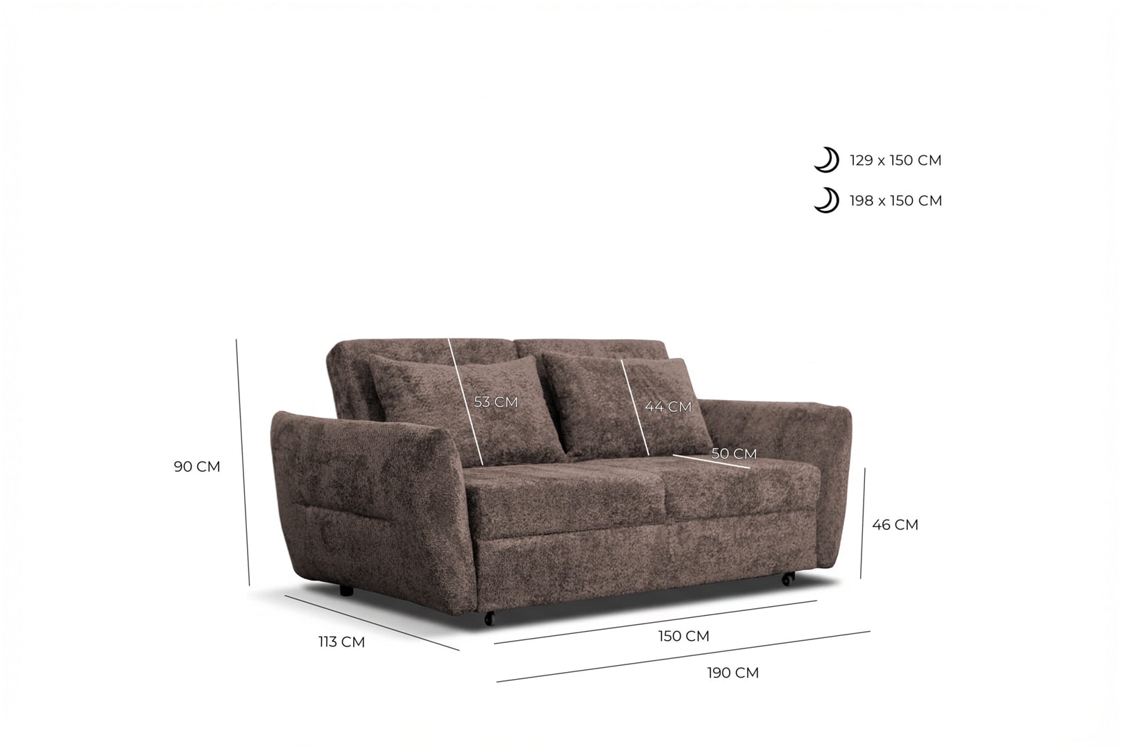 Rozkládací pohovka Lena 190 cm výška sedu 46 cm lůžko 150x198 cm