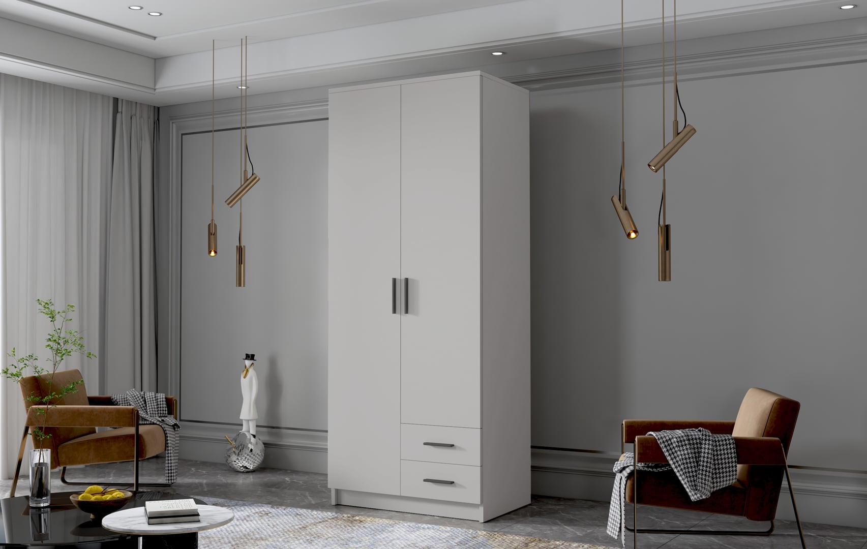 Prostorná šatní skříň Adriana  je vyrobena v moderním designu a nabízí velké množství praktického úložného prostoru (viz obrázek).Otvírání dveří klasický způsob. Korpus a dveře jsou vyrobeny z kvalitního lamina (16 mm). Skříň je dodávána v demontu a v různém barevném provedení.