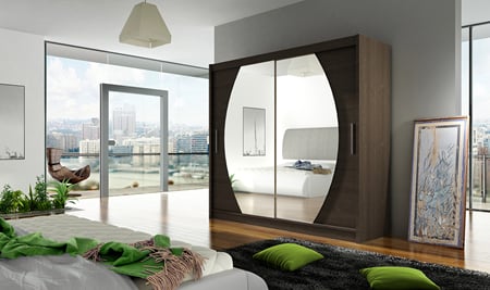 Prostorná šatní skříň Bega je vyrobena v moderním designu a nabízí velké množství praktického úložného prostoru (viz obrázek). Neocenitelný je systém trendových posuvných dveří se zrcadlem, které usnadňují manipulaci a šetří prostor v interiéru. Korpus a dveře jsou vyrobeny z kvalitního lamina (16 mm). Šatní skříní Bega si můžete doplnit stávající vybavení pokoje. Skříň je dodávána v demontu a v různém barevném provedení.