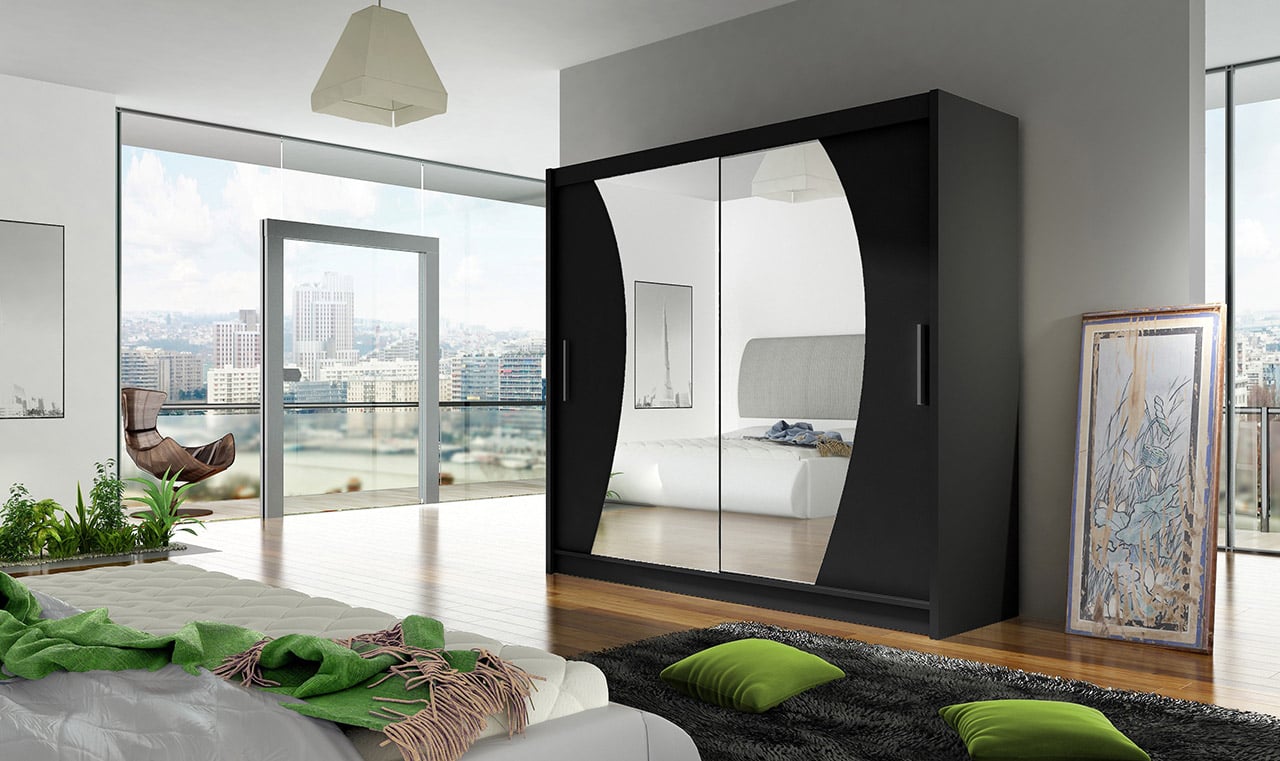 Skříň  s posuvnými dveřmi, je vyrobena z kvalitního lamina o síle 16 mm a hrany jsou ukončeny ABS lištou. Vodící lišty jsou vyrobeny z odolného hliníku a splňují požadavky pro každodenní užívání. Skříň je doplněna zrcadlem, které jí dodává elegantní vzhled a místnost opticky zvětší a prosvětlí. Díky svým rozměrům a uspořádání poskytuje dostatek úložného prostoru. Skříň je dodávána v demontu.