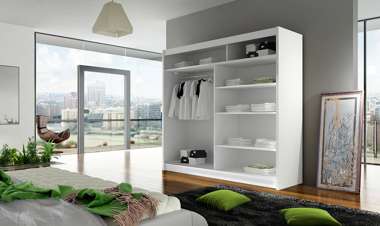 Prostorná šatní skříň Book je vyrobena v moderním designu a nabízí velké množství praktického úložného prostoru (viz obrázek). Neocenitelný je systém trendových posuvných dveří se zrcadlem, které usnadňují manipulaci a šetří prostor v interiéru. Korpus a dveře jsou vyrobeny z kvalitního lamina (16 mm). Šatní skříní Book si můžete doplnit stávající vybavení pokoje. Skříň je dodávána v demontu a v různém barevném provedení.