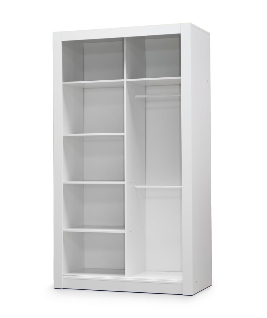 Prostorná šatní skříň Boxík je vyrobena v moderním designu a nabízí velké množství praktického úložného prostoru (viz obrázek) způsob. Korpus a dveře jsou vyrobeny z kvalitního lamina (16 mm). Skříň je dodávána v demontu .
