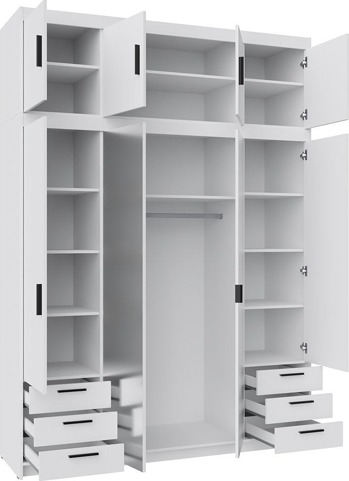 Šatní skříň Elza 4D 6S s nástavcem 176x245,5x53 cm