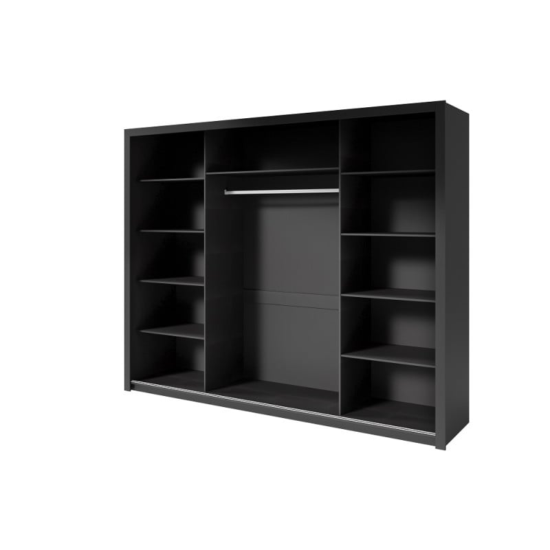 Skvěle zapadne do každého moderního interiéru. Byl navržen v moderním stylu, ze kterého vyzařuje lehkost a elegance. Na výrobu šatní skříně byla použita kvalitní laminovaná dřevotříska, která zaručuje kvalitu výrobku. Při tvorbě projektu jsme dbali na každý detail, aby využití šatní skříně bylo funkční i praktické. Vnitřek šatní skříně je vybaven širokými policemi, které jsou výhodou a umožňují nám uspořádaně skladovat nádoby či jiné věci a také solidně provedená velká tyč, do které se vejde mnoho oblečení. Šatní skříň Frama je dostupná ve dvou velikostech a v černé nebo bílé barvě.