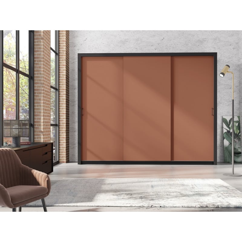 Skvěle zapadne do každého moderního interiéru. Byl navržen v moderním stylu, ze kterého vyzařuje lehkost a elegance. Na výrobu šatní skříně byla použita kvalitní laminovaná dřevotříska, která zaručuje kvalitu výrobku. Při tvorbě projektu jsme dbali na každý detail, aby využití šatní skříně bylo funkční i praktické. Vnitřek šatní skříně je vybaven širokými policemi, které jsou výhodou a umožňují nám uspořádaně skladovat nádoby či jiné věci a také solidně provedená velká tyč, do které se vejde mnoho oblečení. Šatní skříň Frama je dostupná ve dvou velikostech a třech barvách: Smoke Green, Toffee a Depth of Sahara.