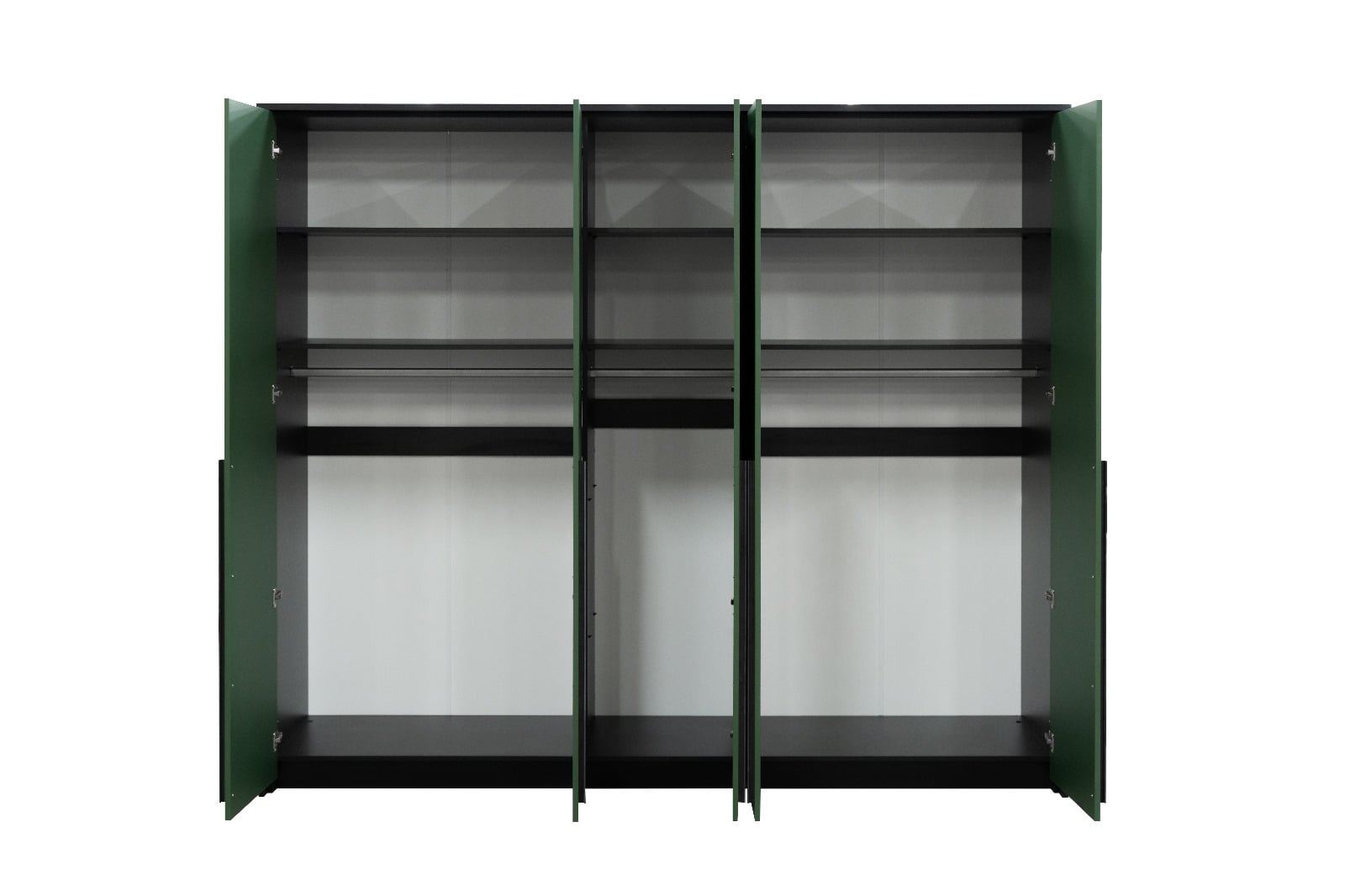 Šatní skříň Genua 255/217/65 bez zrcadla černá dveře zelené