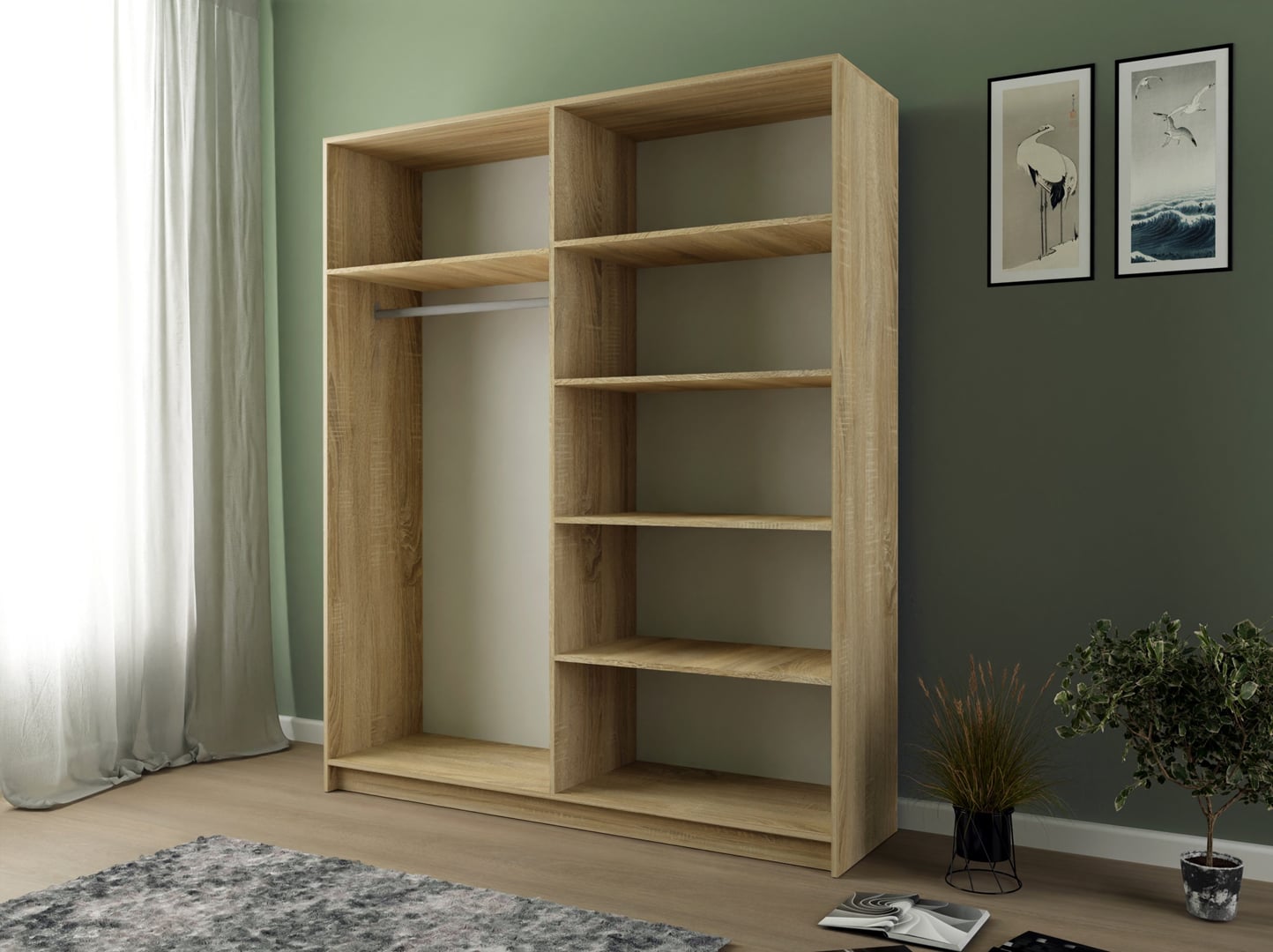 Šatní skříň Mia 160 se zrcadlem dub sonoma bílá