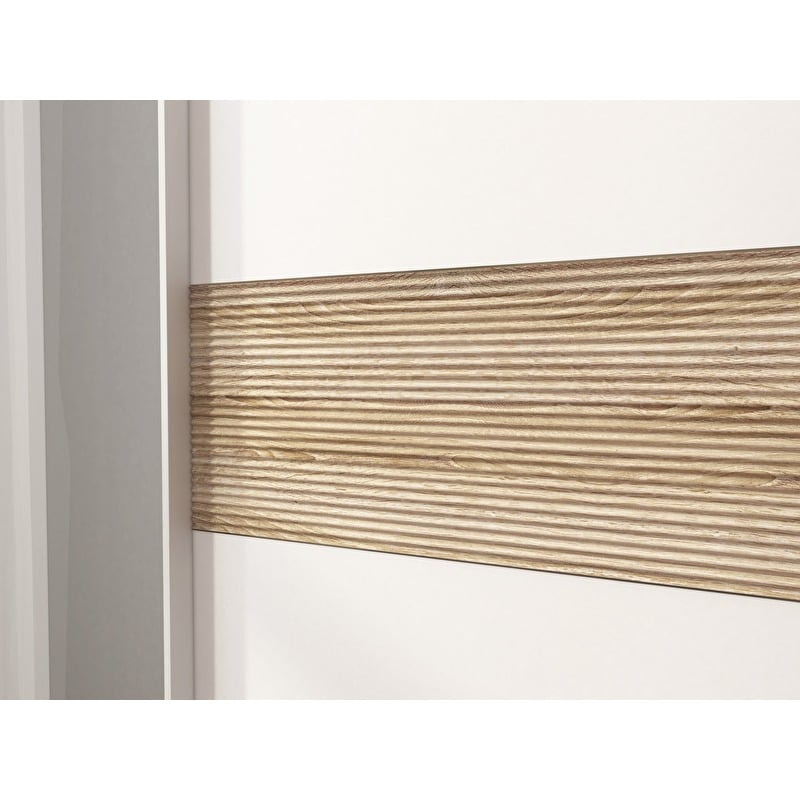 Prostory skříně jsou vybaveny tyčí na ramínka, dvěma velkými policemi ve vrchní části skříně a šesti čtvercovými bočními policemi. Pro snadný posun dveří má skříň vytažené hliníkové hrany.