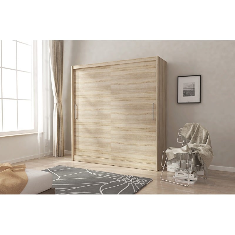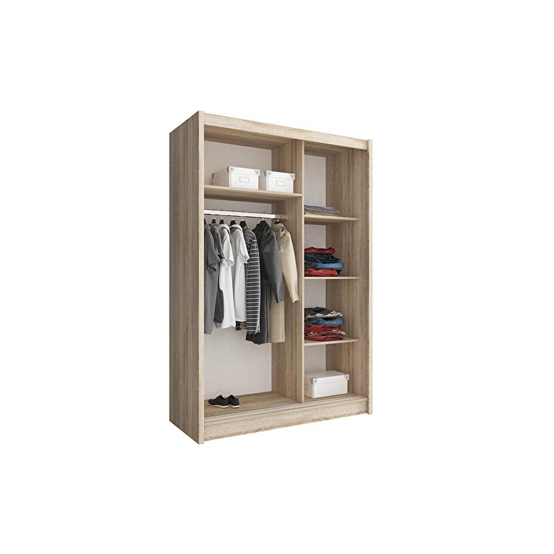 Šatní skříň - OKI - Skříně z této kolekce Vás zaujmou nejen příznivou cenou, ale také dobrou kvalitou zpracování. Oboje dveře skříní jsou posuvné. Vnitřní uspořádání skříní je jak policový systém, tak šatní systém s tyčí na ramínka. Skříně OKI nabízíme v atraktivních kombinacích oblíbených dřevěných odstínů dle výběru.. Tento výrobek dodáváme v demontu.