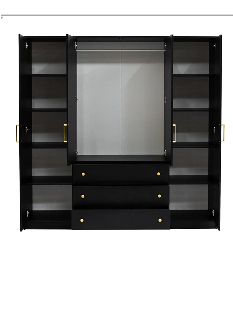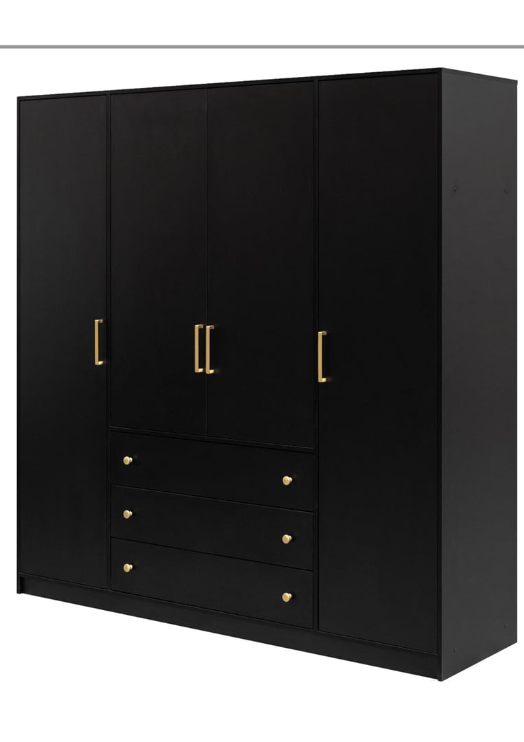 Retro šatní skříň,je to model snů,který bude fungovat jak v ložnici,šatna a předsíň.Moderní design černé barevné kombinace se zlatými rukojeťmi je to nadčasový model,která osloví každého!