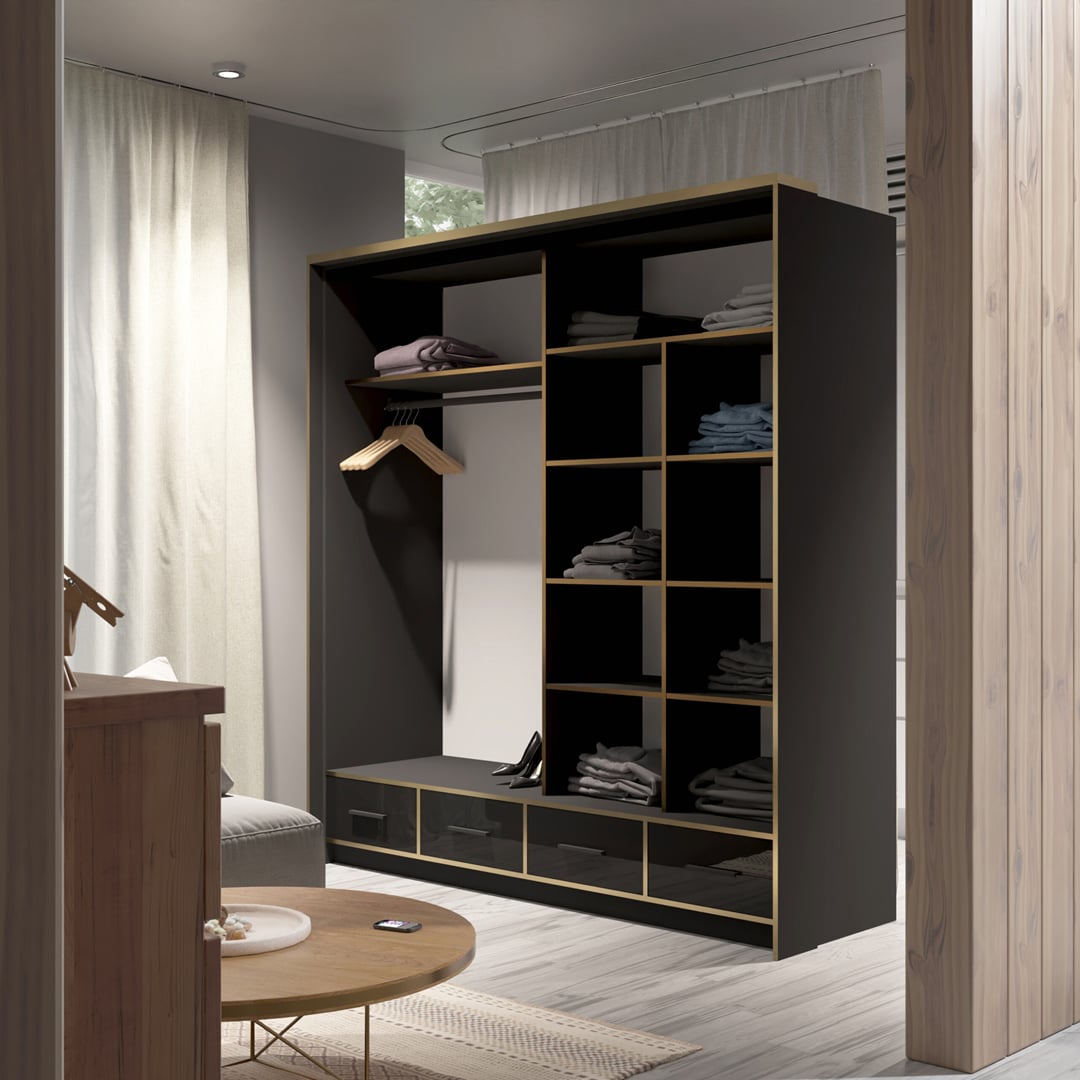 Šatní skříň Sevilla 200/220/66 se zrcadlem s LED osvětlením