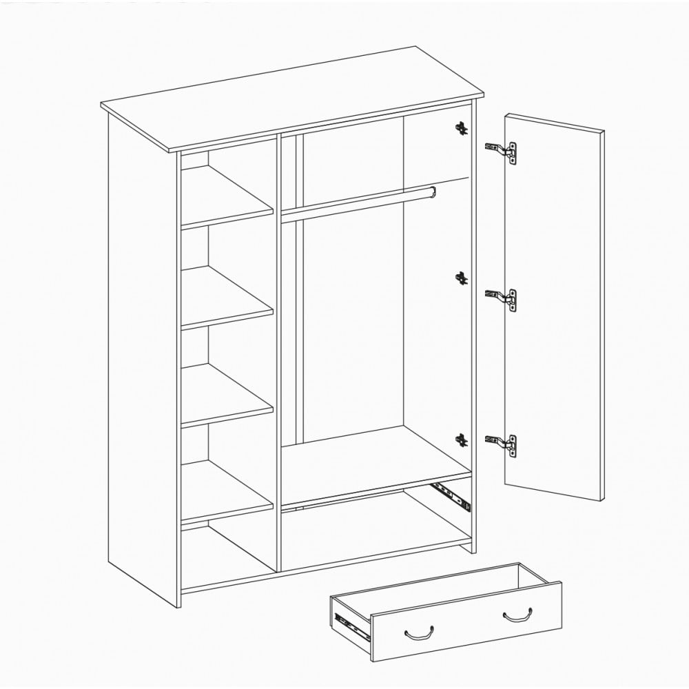šatní skříň 1S3D - 133/200/50 s jedním šuplíkem