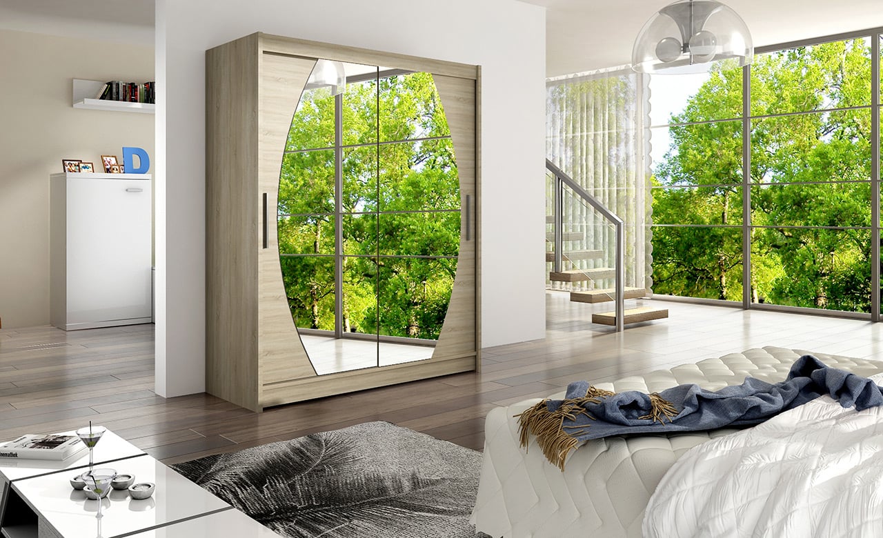 Šatní skříň Volvo VIII 150x200x58 se zrcadly dub sonoma akce