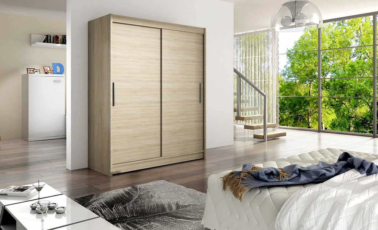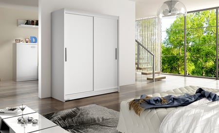 Prostorná šatní skříň Westa vyniká jednoduchým a elegantním designem.. Je vyrobena z lamina o síle 16 mm a hrany jsou ukončeny ABS lištou. Vodící lišty jsou vyrobeny z odolného hliníku. Díky svému uspořádání poskytuje dostatek úložného prostoru.  Rozměry ŠxVxH: 150x200x58 cm.