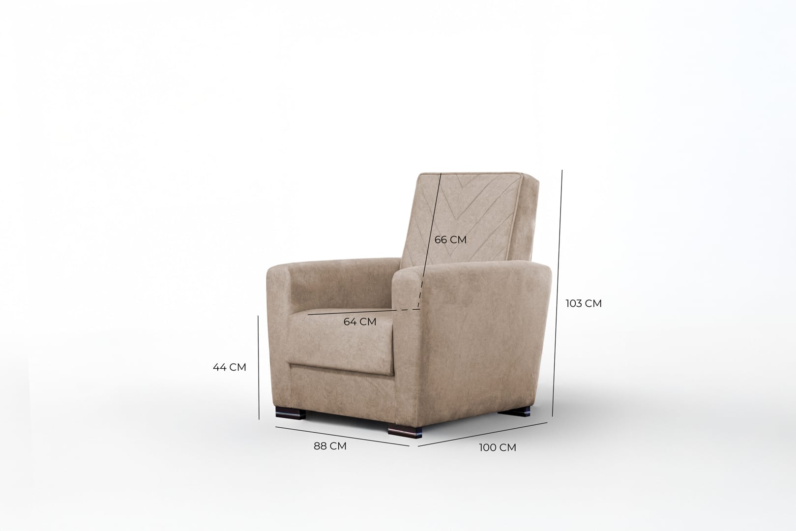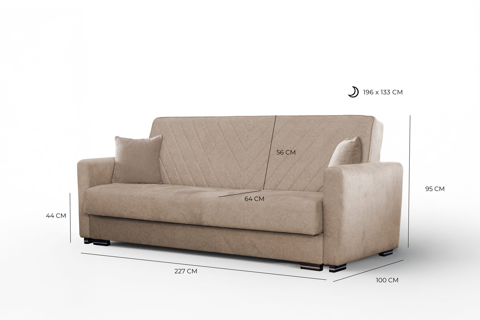 Rozměr pohovky d.227 x hl.100 x v.95 cm Výška sedu pohovky 44 cm Rozměr křesla š.88 x v.103 x hl.100 cm Funkce spaní ano, 133x196 cm Úložný prostor ano - klik klak Sedák, výplň : HR pěna , pružina FALISTA
