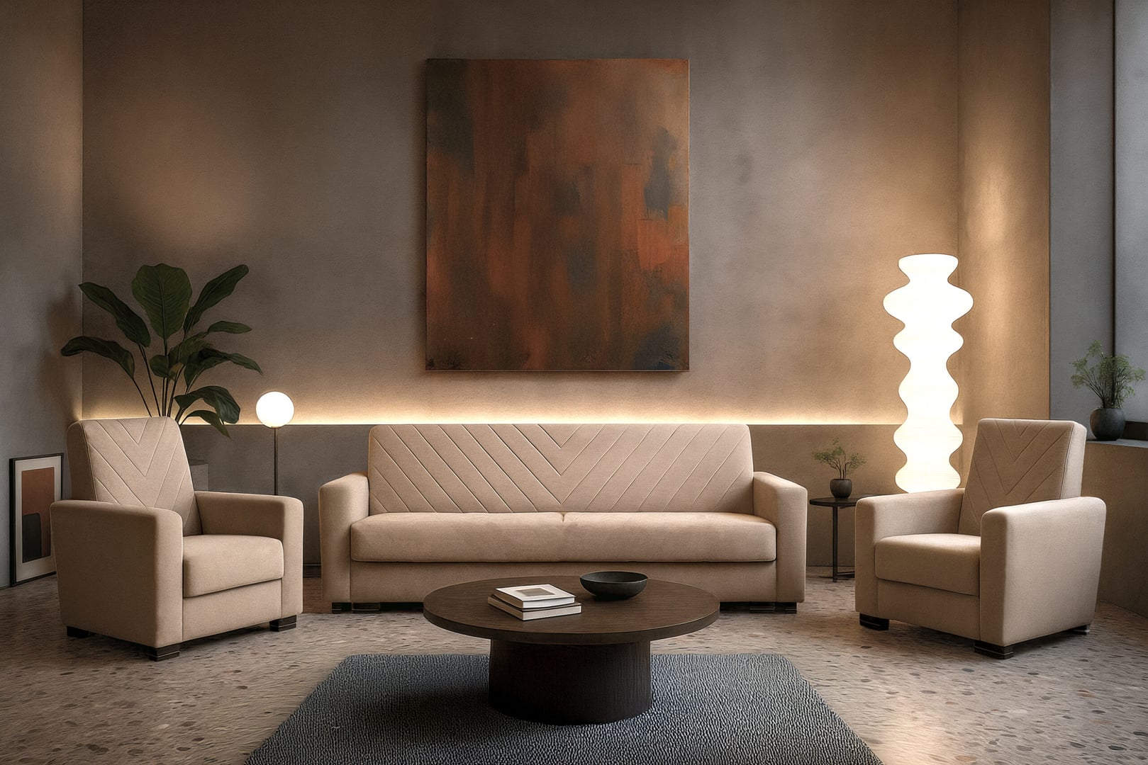 Oblíbená rozkládací sedací souprava 3-1-1 možnost výběru látek ( lze vidět na naší prodejně )