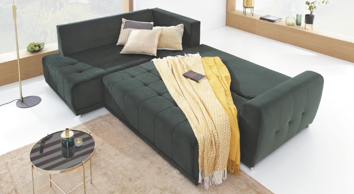 - rozkládací s úložným prostorem - kostra je vyrobena z měkkého a tvrdého dřeva - pružiny typu Faliste - sedáky a opěráky: kvalitní PUR pěna - odnímatelné polštáře, moderní prošití - kovové nožky