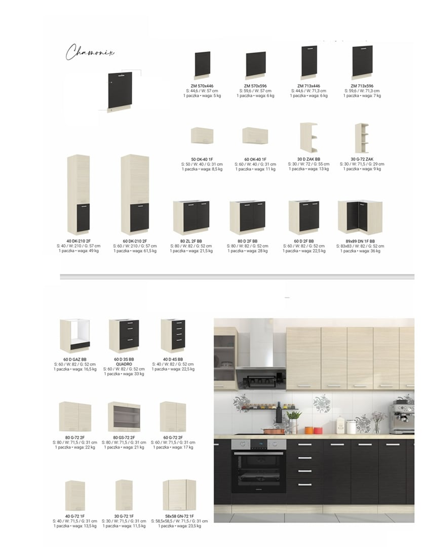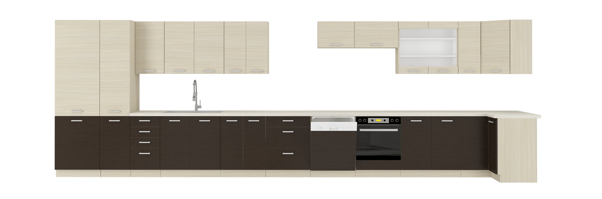 Tato kuchyně je navržena tak, že skříňky se dají poskládat v libovolném pořadí. To vám umožní si sestavit kuchyni podle svých představ.