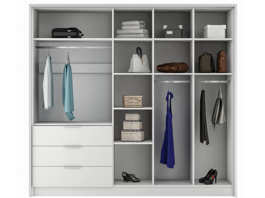 Šatní skříň HOME v moderním provedení. Korpus z kvalitního LTD 16 mm je v barvě grafit nebo v barvě bílá. Dveře jsou bez zrcadla. Hrany u skříně jsou ohraničeny ABS páskou. Uspořádání polic viz perokresba. Kvalitní kování