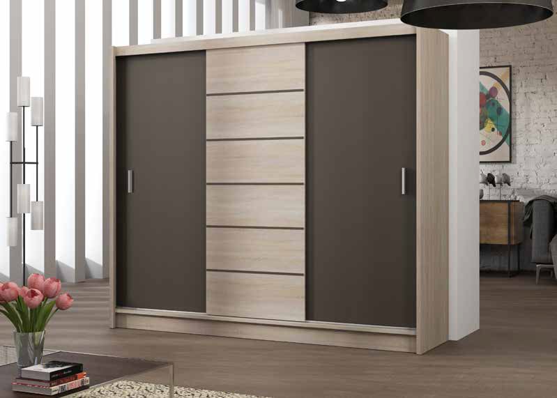 - vysoce moderní skříň- nabízí velký úložný prostor- posuvné dveře- cena je vč. vnitřních polic- kvalitní laminovaná dřevotříska 16 mm- hliníkové kolejniceRozměry:výška 215 cmšířka 250 cmhloubka 61 cmBarevné provedení:- dub sonoma + láva