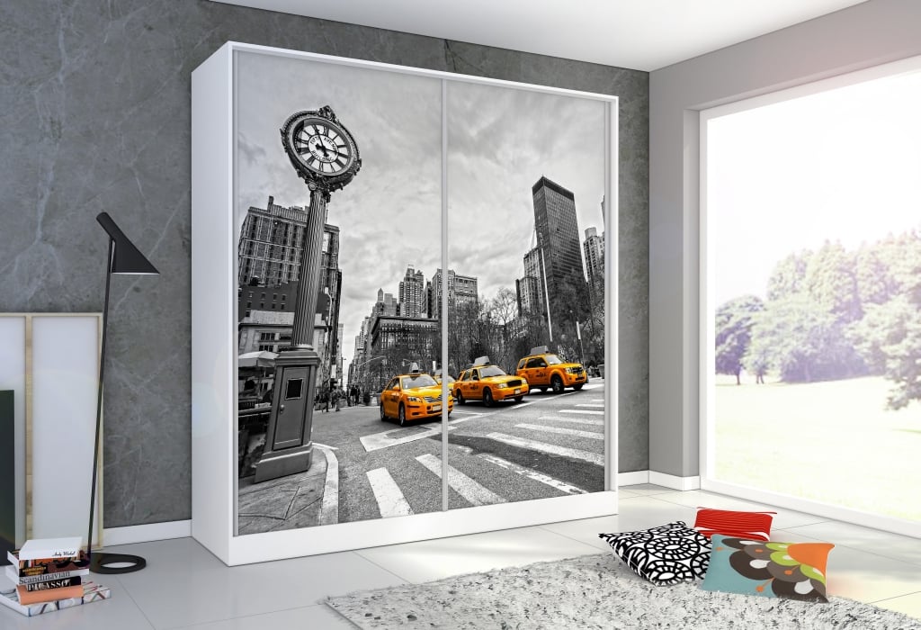 Skříň s obrázkem TAXI 200 cm, bílá Barva: bílá Rozměry (šxhxv): 200 x 62 x 214 cm Materiál: lamino, ABS hrany, MDF Dodání v demontu.