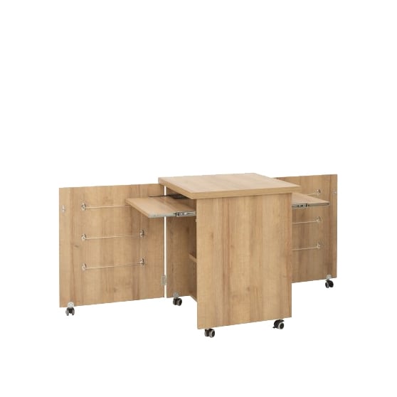 Stůl je vybaven pevnými vnitřními a dvěma výsuvnými policemi.