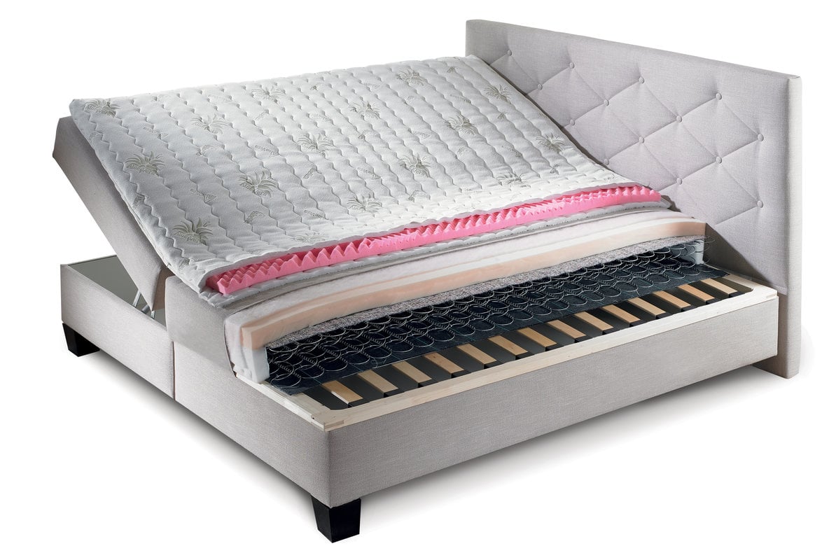 k spojení matrace s úložným prostorem je použit výklopný mechanismus s pružinami