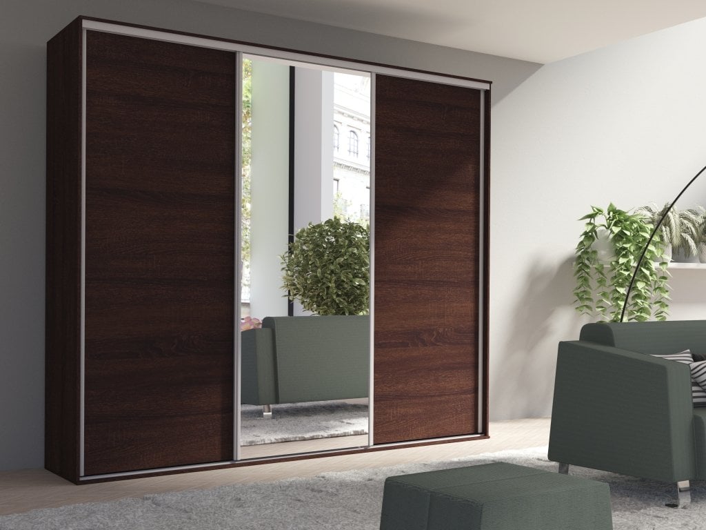 ZRCADLOVÁ SKŘÍŇ S POSUVNÝMI DVEŘMI GRANDE 277/244/62 ČOKOLÁDA